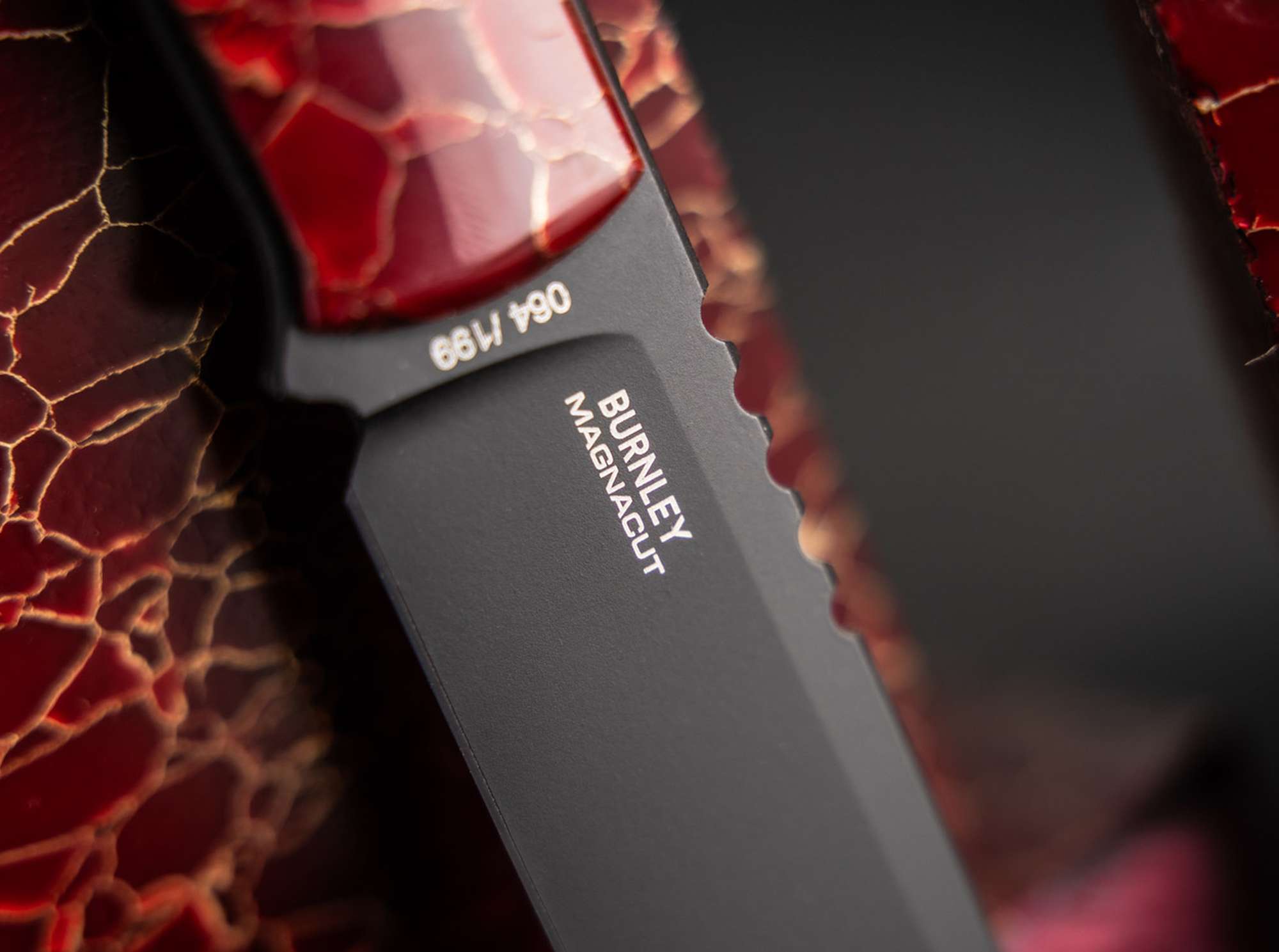 Das Böker BFF Packlite Truestone von Messermacher Lucas Burnley verkörpert kompromisslose Reduktion gepaart mit höchster handwerklicher Präzision. Als streng limitierte Sonderedition mit lediglich 199 Exemplaren weltweit erweitert dieses feststehende Messer die Barlow-BFF-Serie und richtet sich an Kenner, die minimalistisches Design und aussergewöhnliche Materialien schätzen. Die klar geformte Droppoint-Klinge aus CPM MagnaCut wird auf etwa 62 HRC gehärtet und überzeugt durch eine ausgewogene Kombination aus Schnitthaltigkeit, Zähigkeit und sehr guter Korrosionsresistenz. Das widerstandsfähige Cerakote-Finish schützt die Klinge zuverlässig vor Abnutzung und macht das Messer sowohl für den täglichen Einsatz als auch für Outdoor-Aktivitäten bestens geeignet. Funktionale Details wie die präzise ausgearbeitete Fehlschärfe und die griffigen Jimpings am Klingenrücken sorgen für verbesserte Kontrolle und unterstreichen den technischen Anspruch des Designs. Ein echtes Highlight ist der Griff aus Truestone, einem hochwertigen Verbund aus Stein und Harz. Die tiefrote, marmorierte Optik verleiht dem Messer eine herausstechende Ästhetik, während die angenehme Haptik und ergonomische Form ein sicheres Handling ermöglichen. Die Full-Tang-Konstruktion erhöht zusätzlich die Stabilität und sorgt für ein ausgewogenes, direktes Gefühl in der Hand. Gefertigt wird das Böker BFF Packlite Truestone in aufwendiger Handarbeit in der Böker Manufaktur Solingen. Es wird mit einer hochwertigen Lederscheide geliefert, die einen sicheren Transport ermöglicht. Ob als stilvolles EDC-Fixed-Blade, zuverlässiges Backup für Outdoor-Abenteuer oder exklusives Sammlerstück – dieses Messer verbindet Funktionalität, Design und Seltenheitswert auf höchstem Niveau.