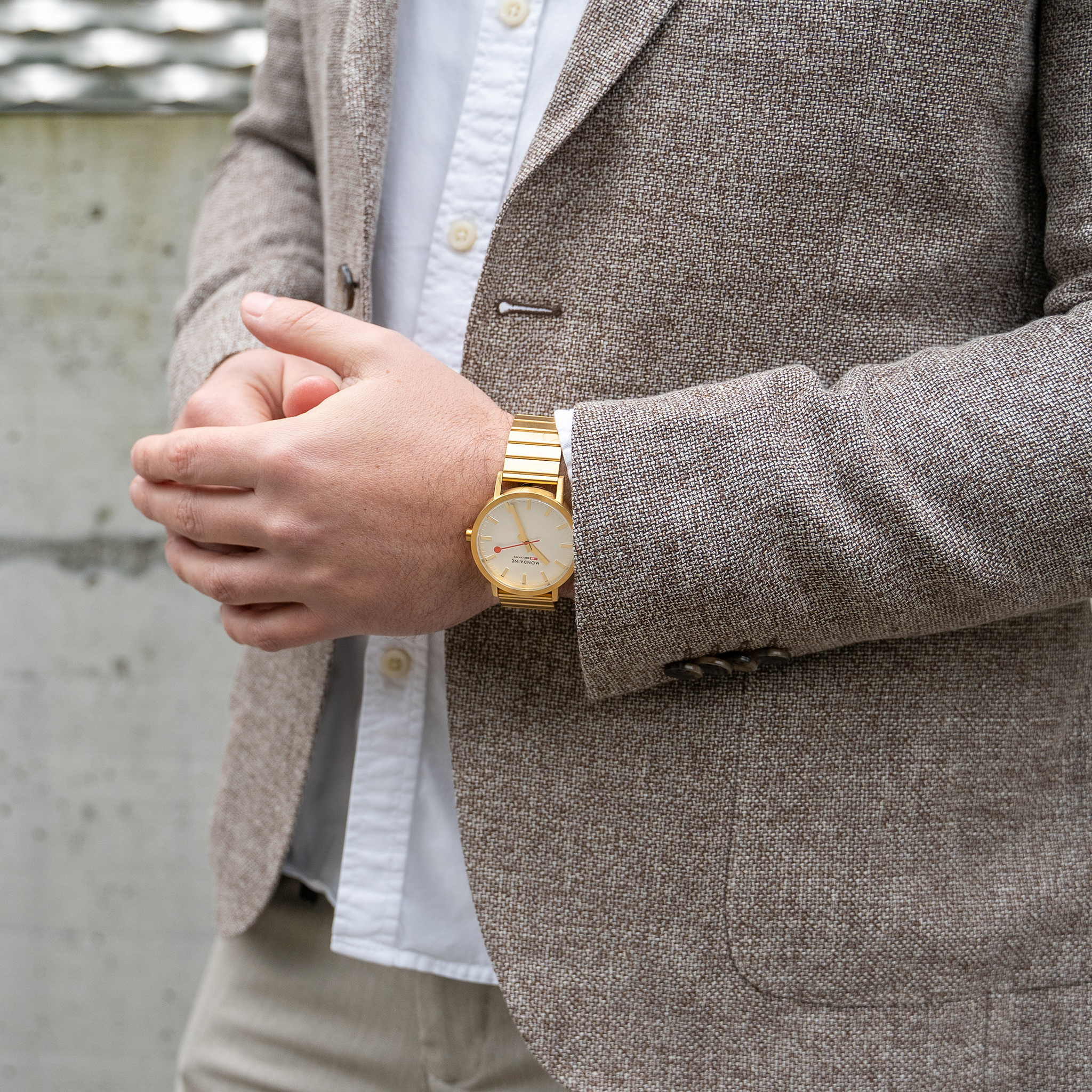Die Mondaine SBB Classic Gold vereint edle Eleganz mit funktionaler Klarheit. Ihr präzise gearbeitetes Gehäuse und das ikonische, von der Schweizer Bahnhofsuhr inspirierte Zifferblatt verkörpern grossartiges Design und beste Ablesbarkeit. Die goldenen Stunden- und Minutenzeiger sowie der charakteristische rote Sekundenzeiger – das unverwechselbare Symbol der Schweizer Pünktlichkeit – prägen das Erscheinungsbild dieser Designikone. Dank des praktischen Schnellwechselsystems lässt sich das Armband im Handumdrehen und ohne Werkzeug austauschen, sodass sich der Stil der Uhr individuell anpassen lässt. Gefertigt in der Schweiz, steht die Classic Gold für höchste Präzision, Langlebigkeit und Nachhaltigkeit – Werte, die Mondaine seit Jahrzehnten auszeichnen. Ursprünglich 1944 für die Schweizerischen Bundesbahnen (SBB) entworfen und 1986 von Mondaine als offizielle Swiss Railways Watch ans Handgelenk gebracht, ist die Classic bis heute ein Stück authentischer Schweizer Designgeschichte – reduziert, funktional und unverkennbar.