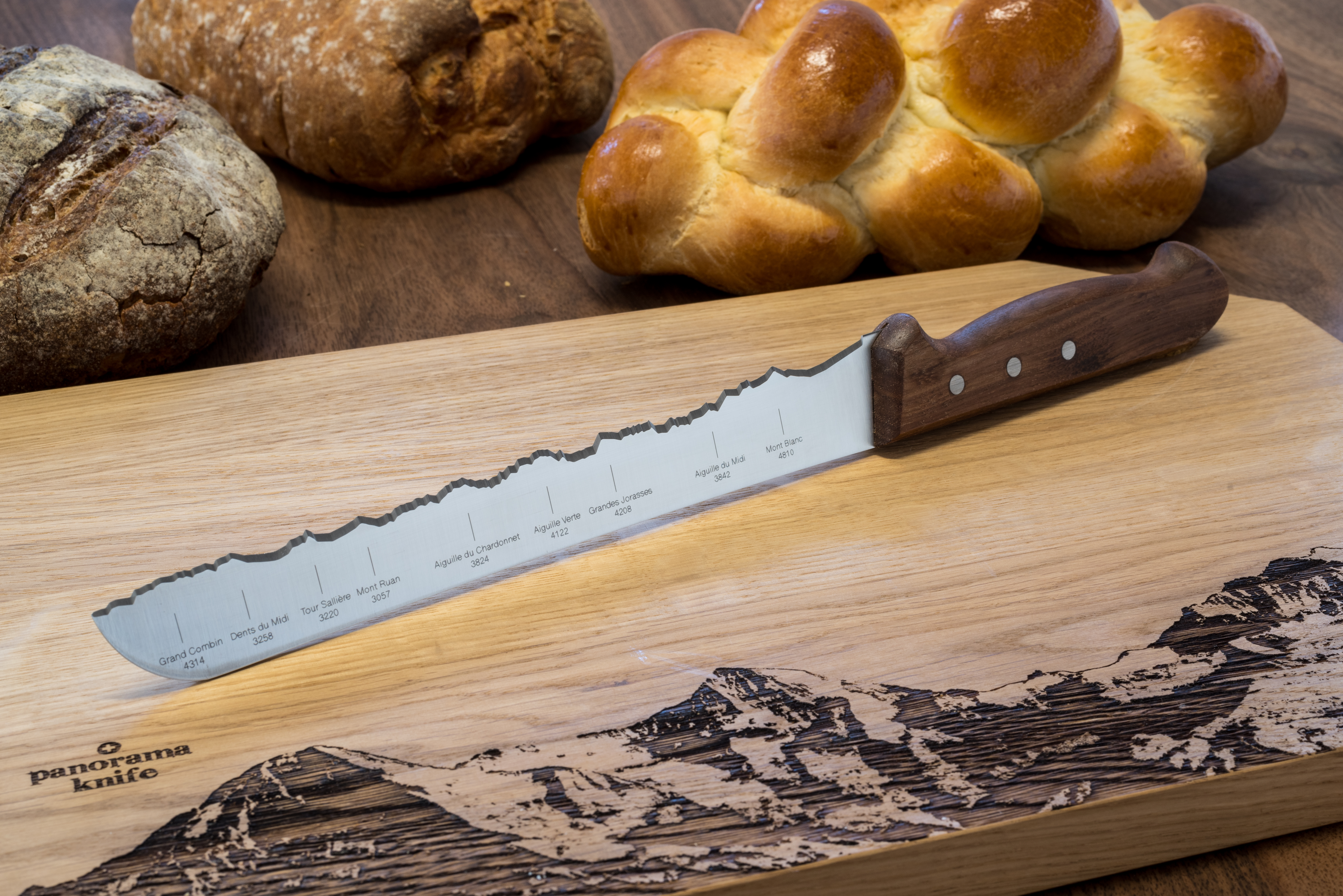 Mit deinem neuen Panoramaknife Brotmesser wird Schneiden zum Erlebnis! Die Klinge ist mit bekannten Schweizer Bergen und Sehenswürdigkeiten verziert – ein echter eidgenössischer Hingucker in jeder Küche. Jedes Messer ist handgefertigt und Made in Switzerland. Von Basel bis ins Tessin, vom Genfersee bis zum Bodensee – nahezu jede Landschaft ist Teil dieser beeindruckenden Kollektion. Freu dich auf eine ca. 21 cm lange Klinge aus hochwertigem Chirurgenstahl und einen eleganten Griff aus Nussbaumholz. Denn Heimat ist schliesslich auch bei dir zu Hause!