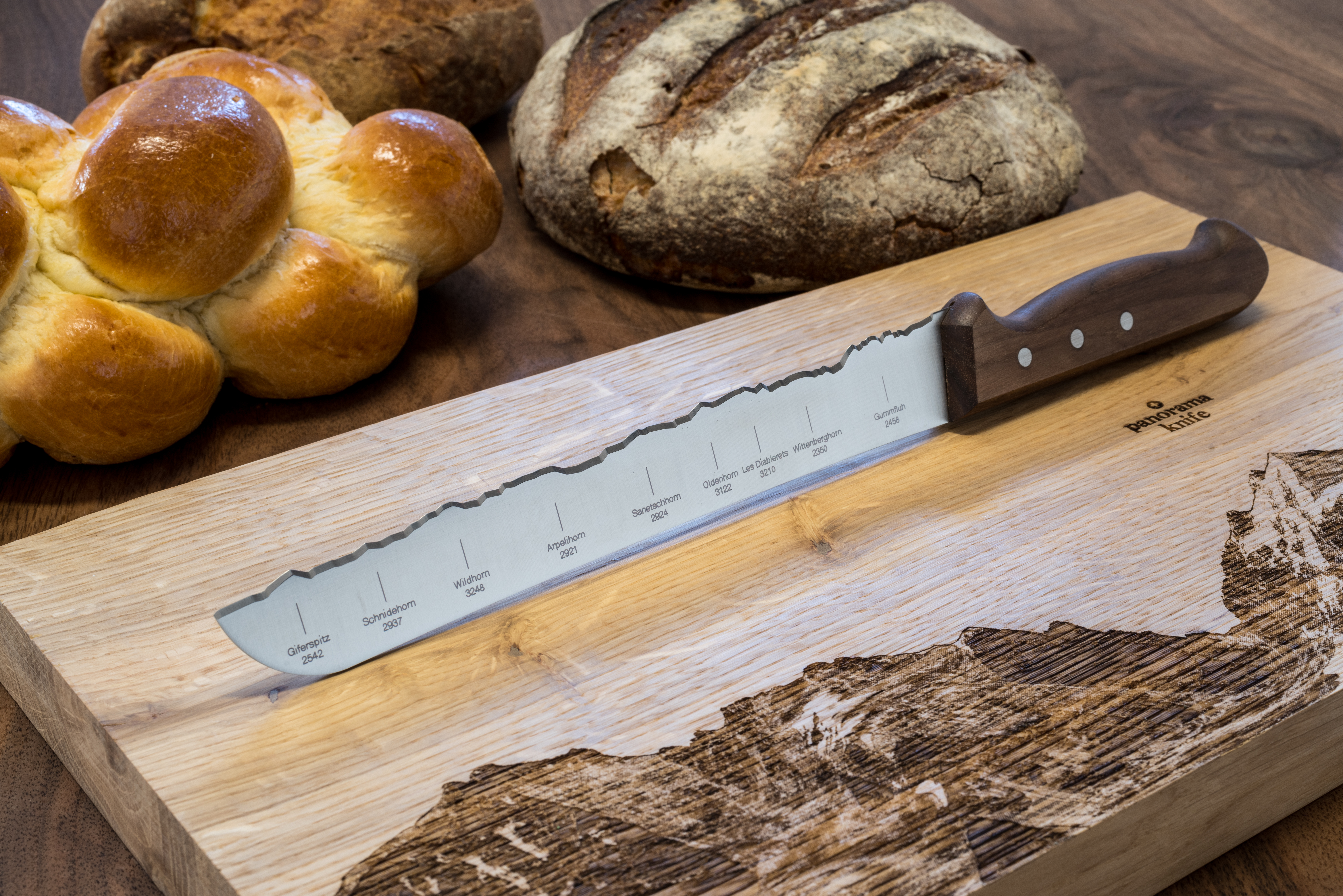 Mit deinem neuen Panoramaknife Brotmesser wird Schneiden zum Erlebnis! Die Klinge ist mit bekannten Schweizer Bergen und Sehenswürdigkeiten verziert – ein echter eidgenössischer Hingucker in jeder Küche. Jedes Messer ist handgefertigt und Made in Switzerland. Von Basel bis ins Tessin, vom Genfersee bis zum Bodensee – nahezu jede Landschaft ist Teil dieser beeindruckenden Kollektion. Freu dich auf eine ca. 21 cm lange Klinge aus hochwertigem Chirurgenstahl und einen eleganten Griff aus Nussbaumholz. Denn Heimat ist schliesslich auch bei dir zu Hause!