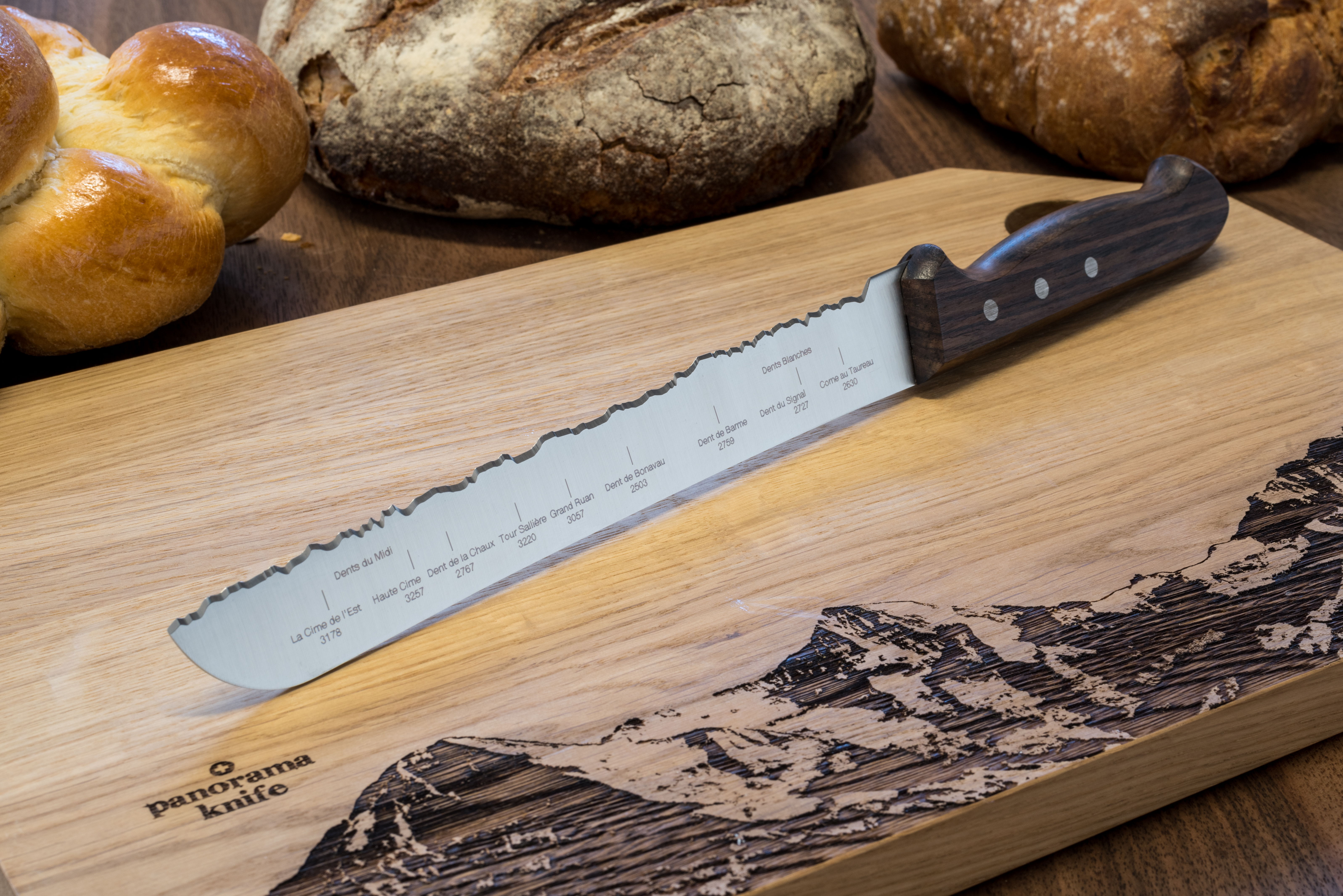 Mit deinem neuen Panoramaknife Brotmesser wird Schneiden zum Erlebnis! Die Klinge ist mit bekannten Schweizer Bergen und Sehenswürdigkeiten verziert – ein echter eidgenössischer Hingucker in jeder Küche. Jedes Messer ist handgefertigt und Made in Switzerland. Von Basel bis ins Tessin, vom Genfersee bis zum Bodensee – nahezu jede Landschaft ist Teil dieser beeindruckenden Kollektion. Freu dich auf eine ca. 21 cm lange Klinge aus hochwertigem Chirurgenstahl und einen eleganten Griff aus Nussbaumholz. Denn Heimat ist schliesslich auch bei dir zu Hause!