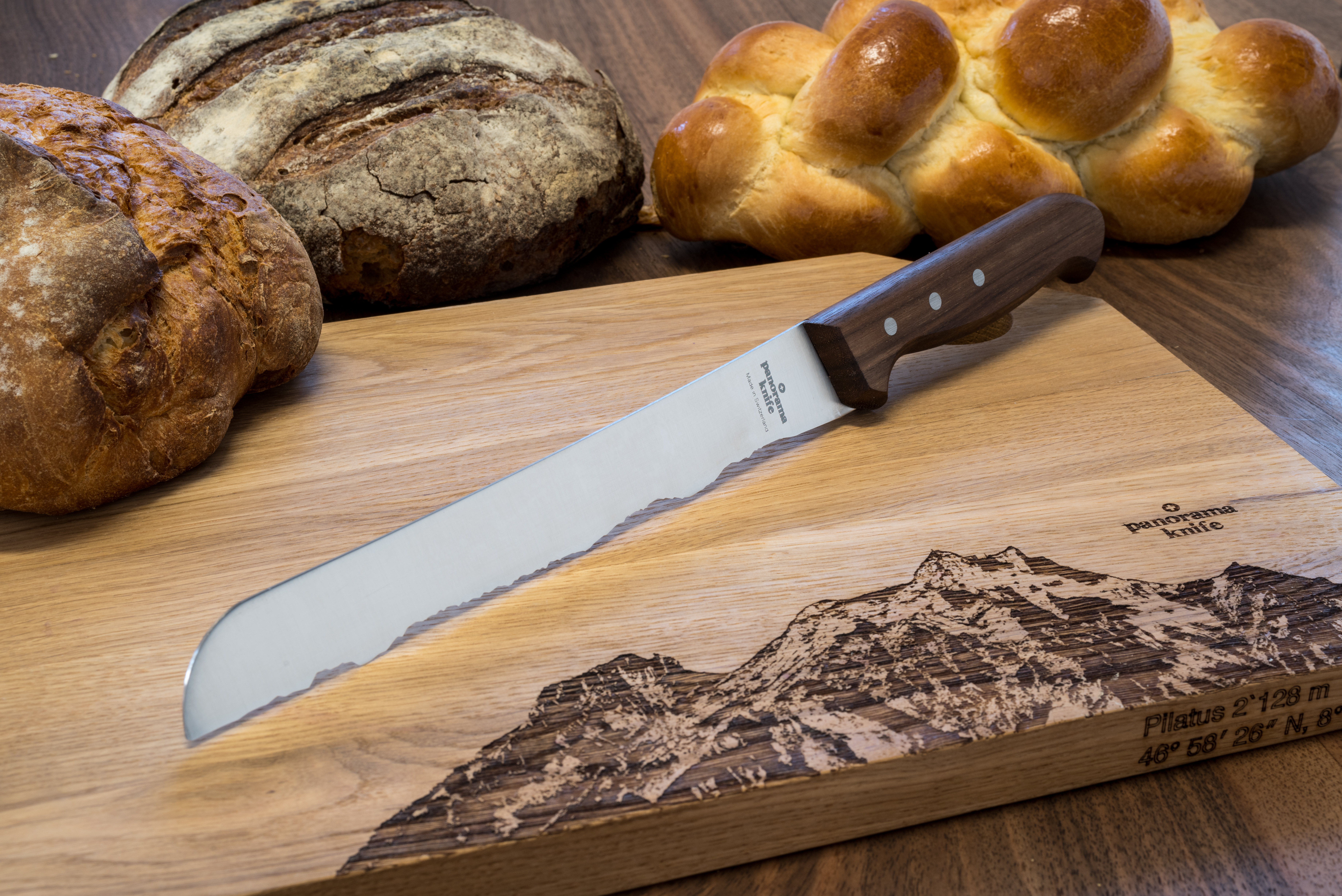 Mit deinem neuen Panoramaknife Brotmesser wird Schneiden zum Erlebnis! Die Klinge ist mit bekannten Schweizer Bergen und Sehenswürdigkeiten verziert – ein echter eidgenössischer Hingucker in jeder Küche. Jedes Messer ist handgefertigt und Made in Switzerland. Von Basel bis ins Tessin, vom Genfersee bis zum Bodensee – nahezu jede Landschaft ist Teil dieser beeindruckenden Kollektion. Freu dich auf eine ca. 21 cm lange Klinge aus hochwertigem Chirurgenstahl und einen eleganten Griff aus Nussbaumholz. Denn Heimat ist schliesslich auch bei dir zu Hause!