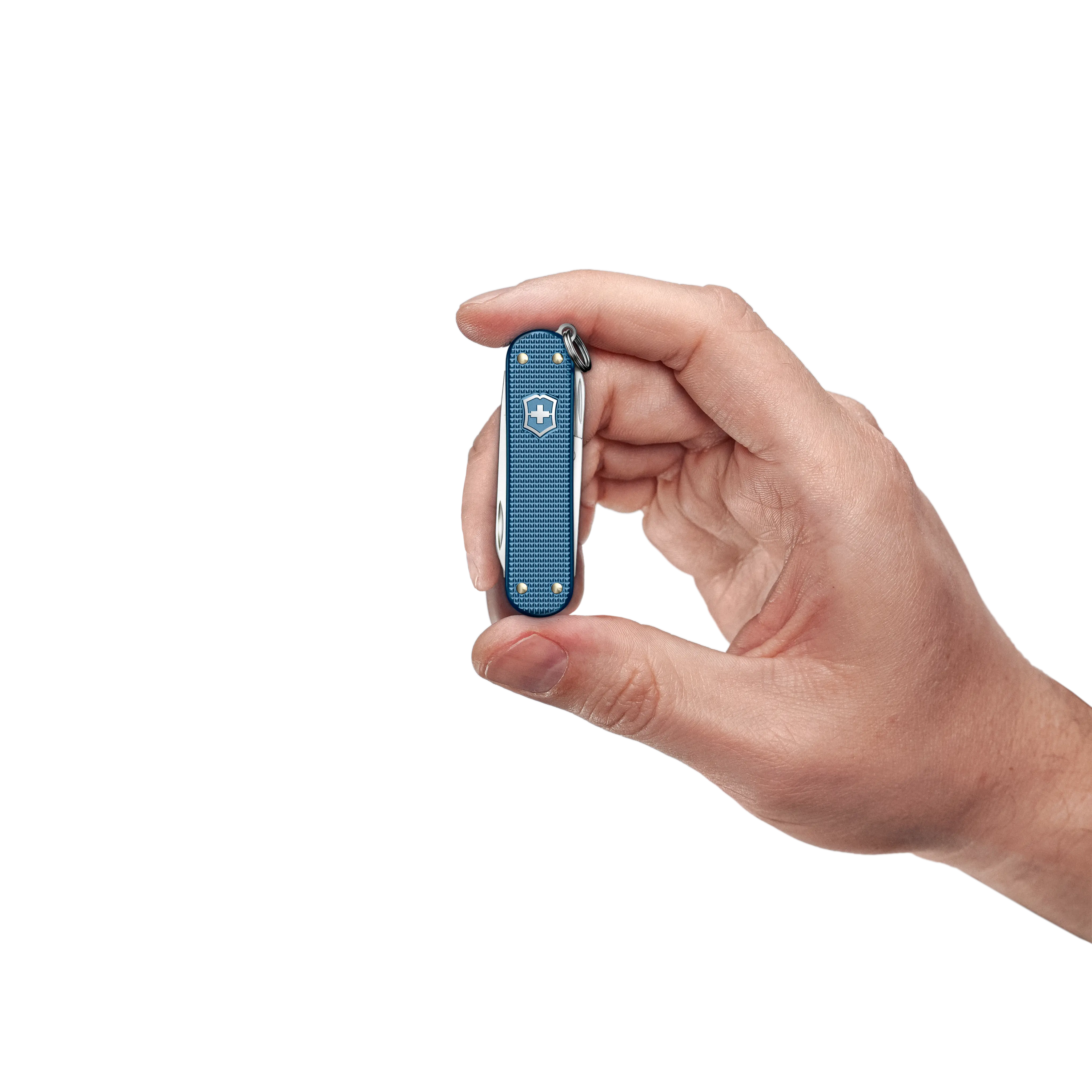 Die diesjährige Kollektion ist bereits die 12. ihrer Art. Mit dabei ist natürlich auch wieder das Classic SD. Als Teil der Alox Limited Edition 2026 besticht es durch einen kraftvollen Farbton – genauer gesagt durch die Farbe «Glacial Blue». Sie soll die Verbundenheit zur Natur darstellen, inspiriert von einem kühlen, erhabenen Berggletscher. Die Schale des limitierten Classic SD ist aus Aluminium gestanzt und auf der Rückseite mit der Jahreszahl 2026 versehen. Freu dich auf ein geniales Tool, das neben einer kleinen Klinge auch mit seiner Schere sowie einer Nagelfeile überzeugt.