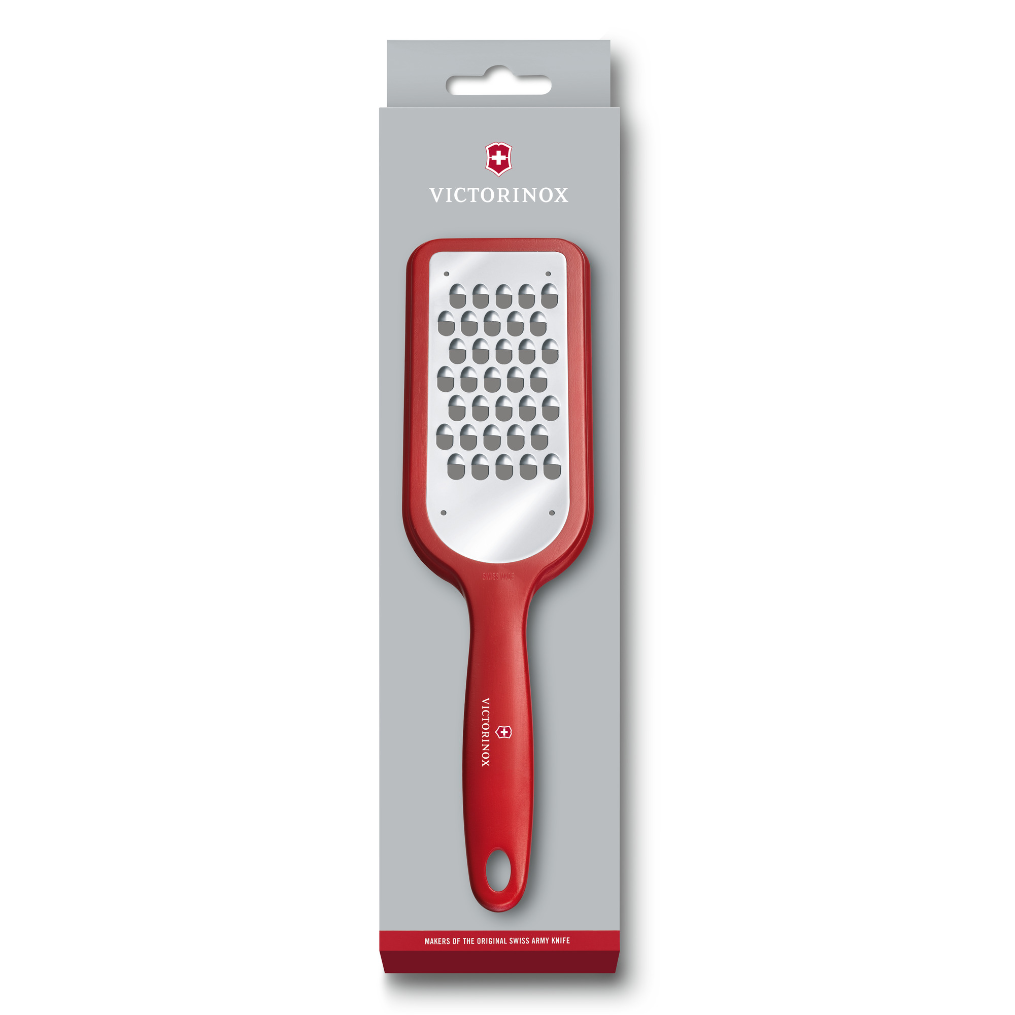 Die Victorinox Küchenreibe mit grober Schneide ist die perfekte Lösung für schnelles und präzises Reiben von Zitrusfrüchten, Gemüse und Kartoffeln. Mit ihrer rasiermesserscharfen Präzisionsklinge sorgt sie für mühelose Ergebnisse und eine besonders feine Textur. Dank der rutschfesten Silikonfüsschen bleibt die Reibe stets stabil auf der Arbeitsfläche, während die cleveren Aussparungen für zusätzliche Sicherheit und Kontrolle sorgen. Der stabile Klingenschutz ermöglicht eine sichere Aufbewahrung und schützt die Klinge, wenn die Reibe nicht in Gebrauch ist. Ergonomisch geformt und intuitiv in der Anwendung, ist sie eine smarte Alternative zur klassischen Mandoline. Ob Karotten, rote Beete, Äpfel oder Schokolade – mit der Victorinox Küchenreibe raspelst du mühelos verschiedenste Zutaten und bringst Effizienz und Präzision in deine Küche. Gefertigt in der Schweiz, überzeugt sie durch ihre hochwertige Verarbeitung und ihr benutzerfreundliches Design.