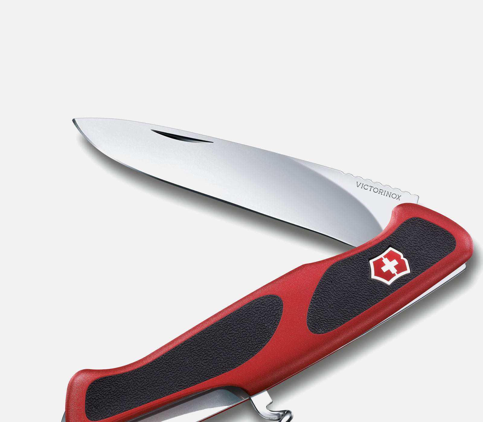 Die leuchtend rote Grip-Schale hilft das Taschenmesser Victorinox Ranger Grip 78 M in jedem Rucksack zu finden. Sogar im Gras liegend, wirst du nicht lange nach deinem Sackmesser suchen müssen.