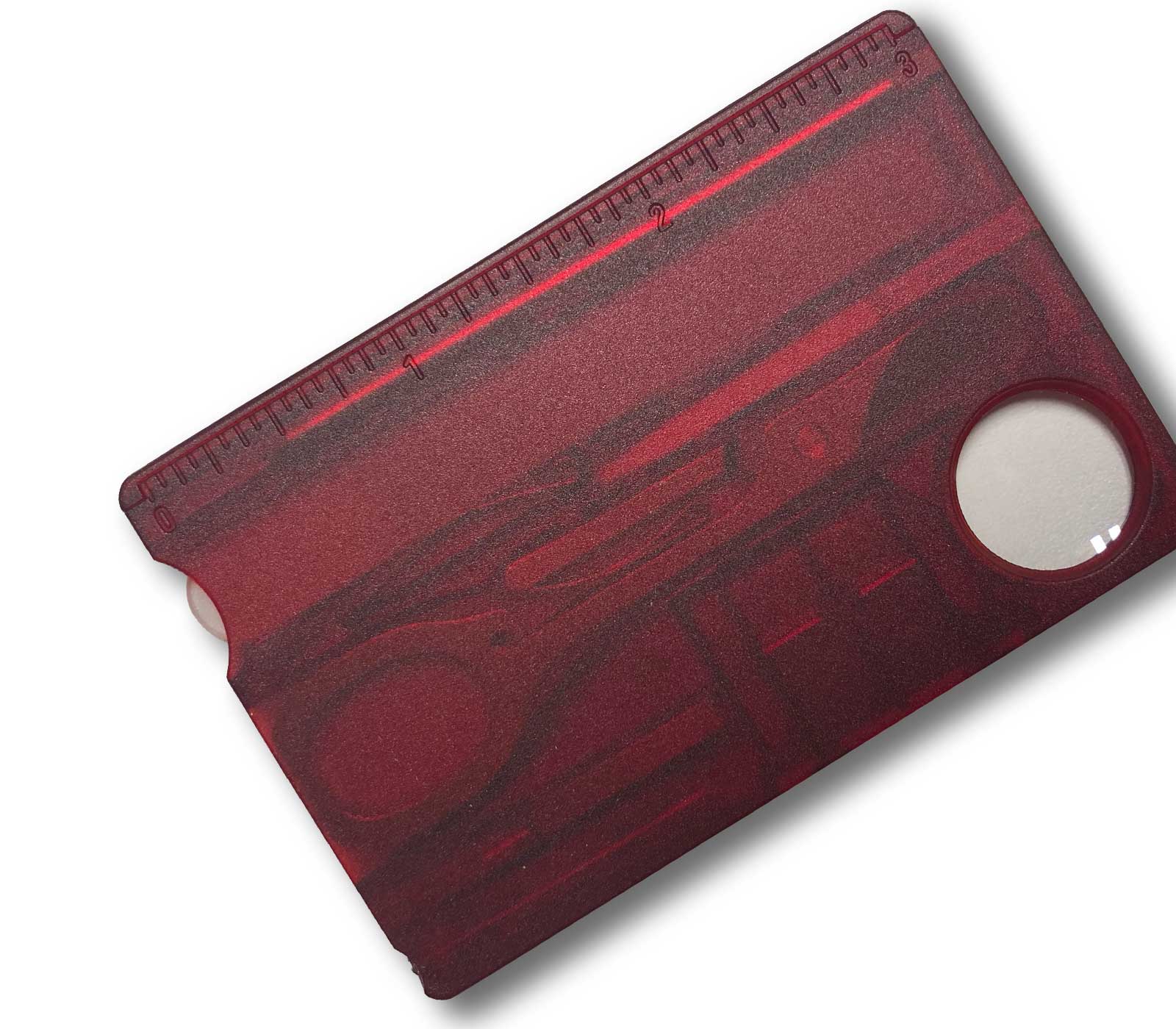- Swiss Card mit Glasnagelfeile, Schere und Lupe