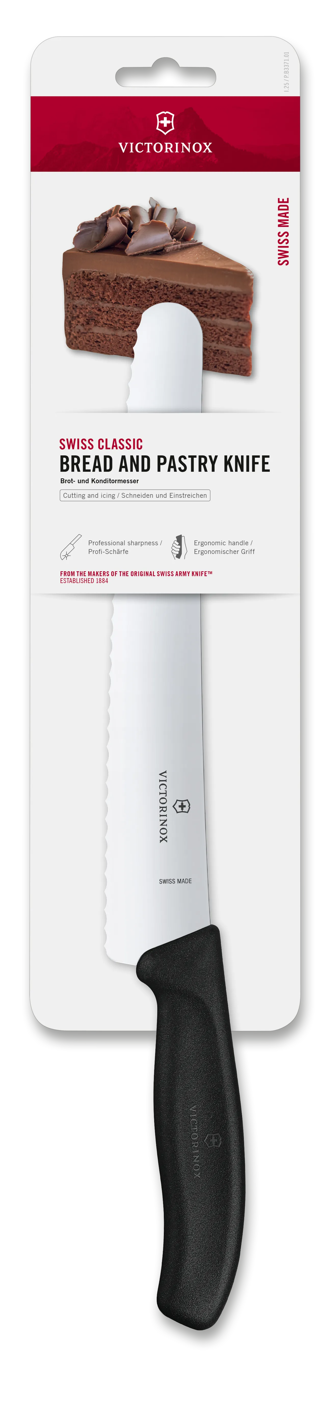 Das Victorinox Swiss Classic Brot- und Konditormesser lässt deine Kuchenträume wahr werden! Dieses Messer hebt das Zubereiten von teigigen Gebäckwaren auf ein neues Niveau. Mit 22 cm oder sogar 26cm ist seine Klinge länger als die des klassischeren Brotmessers aus derselben Serie, damit es auch bis zum Kern grösserer Torten vordringen kann. Der rostfreie Wellenschliff ist extra scharf geschliffen, um auch zarteste Kuchen sauber zu zerteilen, ohne sie zu zerquetschen. Der Griff verleiht eine komfortable Haptik, sodass du deine süssen Kreationen mit Leichtigkeit zerteilen und dann mit deinen Liebsten teilen kannst. Egal, ob du an frisches Brot, Kuchen oder Torte herangehst, mit diesem Messer in der Schublade wirst du zum Held jeder Geburtstagsfeier und jedes Frühstücks!