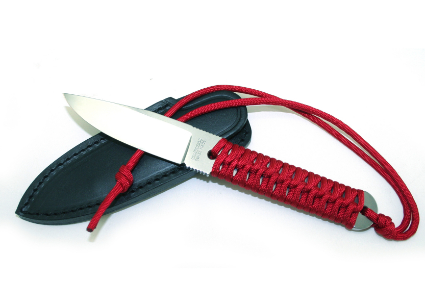 Der Griff ist mit einer roten Paracord-Wicklung versehen, die optimalen Halt bietet und sich bei Bedarf abwickeln und vielseitig einsetzen lässt. Das mitgelieferte schwarze Lederetui lässt sich dank eines stabilen Stahl-Clips mühelos an Gürtel oder Ausrüstung befestigen, sodass das Messer stets sicher aufbewahrt und trotzdem sofort griffbereit ist. Mit einer Gesamtlänge von 19,5 cm und einer Klingenlänge von 8 cm liegt das Freizeitmesser Modell 11 perfekt in der Hand und ist ideal für verschiedenste Anwendungen geeignet.