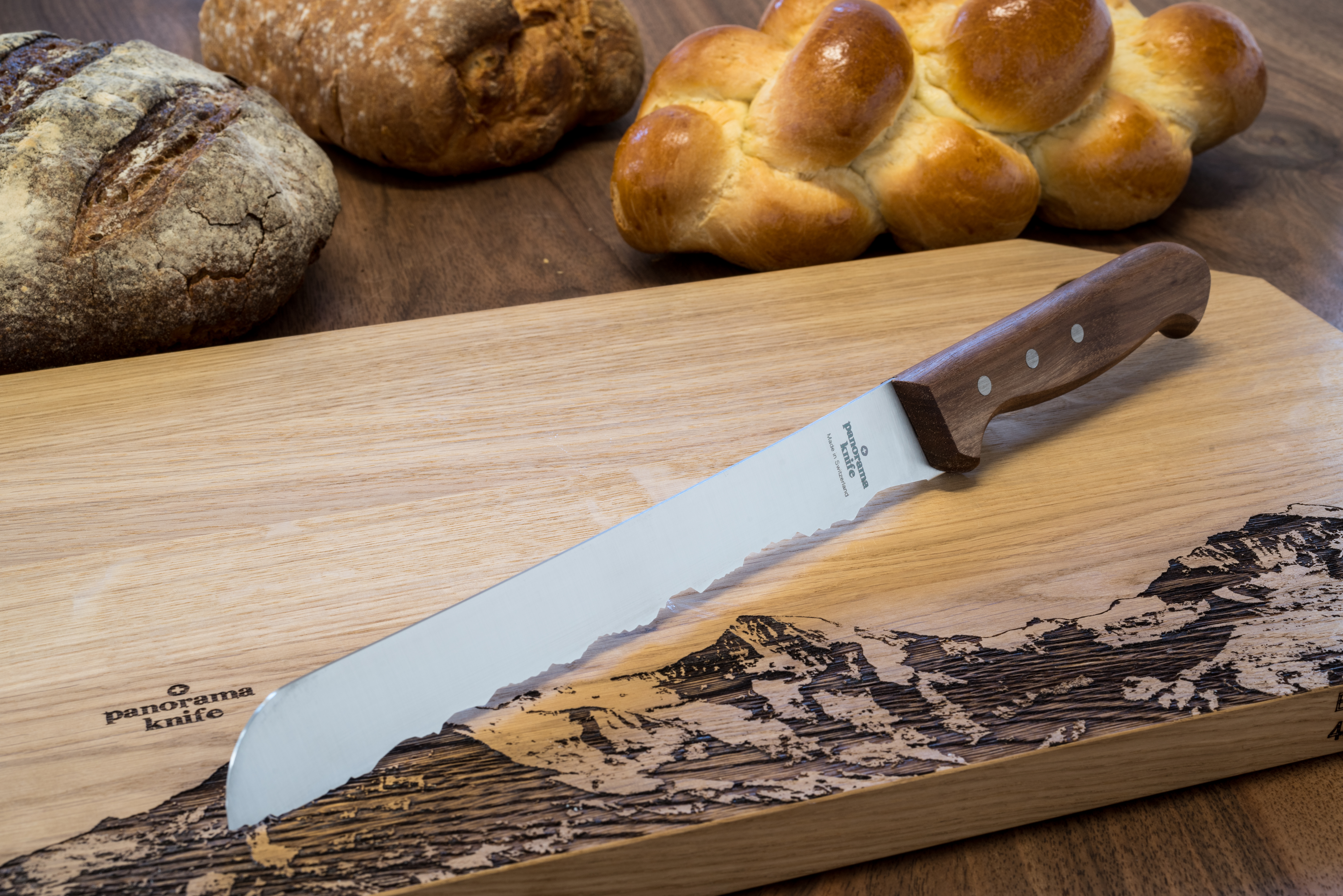 Mit deinem neuen Panoramaknife Brotmesser wird Schneiden zum Erlebnis! Die Klinge ist mit bekannten Schweizer Bergen und Sehenswürdigkeiten verziert – ein echter eidgenössischer Hingucker in jeder Küche. Jedes Messer ist handgefertigt und Made in Switzerland. Von Basel bis ins Tessin, vom Genfersee bis zum Bodensee – nahezu jede Landschaft ist Teil dieser beeindruckenden Kollektion. Freu dich auf eine ca. 21 cm lange Klinge aus hochwertigem Chirurgenstahl und einen eleganten Griff aus Nussbaumholz. Denn Heimat ist schliesslich auch bei dir zu Hause!