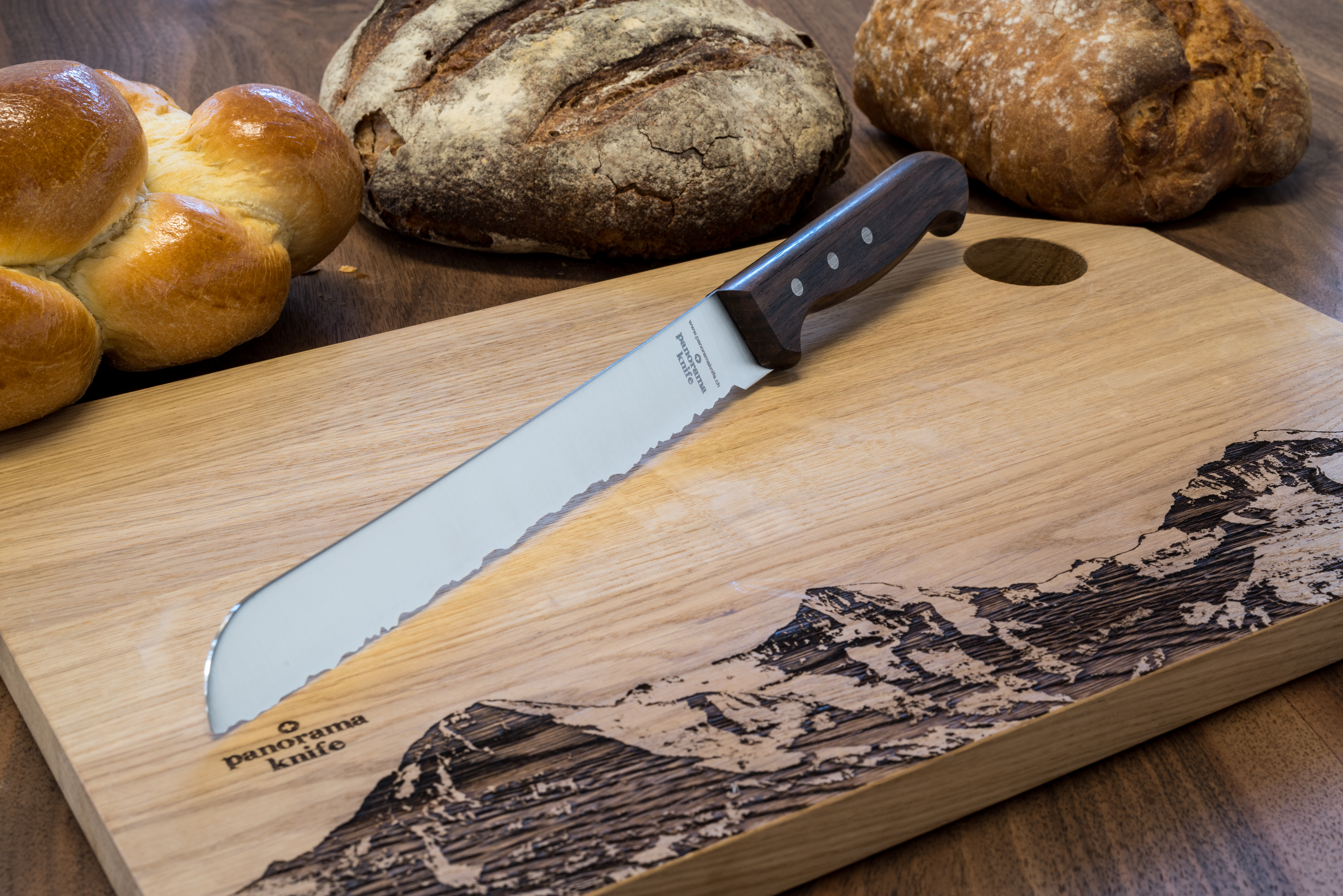 Mit deinem neuen Panoramaknife Brotmesser wird Schneiden zum Erlebnis! Die Klinge ist mit bekannten Schweizer Bergen und Sehenswürdigkeiten verziert – ein echter eidgenössischer Hingucker in jeder Küche. Jedes Messer ist handgefertigt und Made in Switzerland. Von Basel bis ins Tessin, vom Genfersee bis zum Bodensee – nahezu jede Landschaft ist Teil dieser beeindruckenden Kollektion. Freu dich auf eine ca. 21 cm lange Klinge aus hochwertigem Chirurgenstahl und einen eleganten Griff aus Nussbaumholz. Denn Heimat ist schliesslich auch bei dir zu Hause!