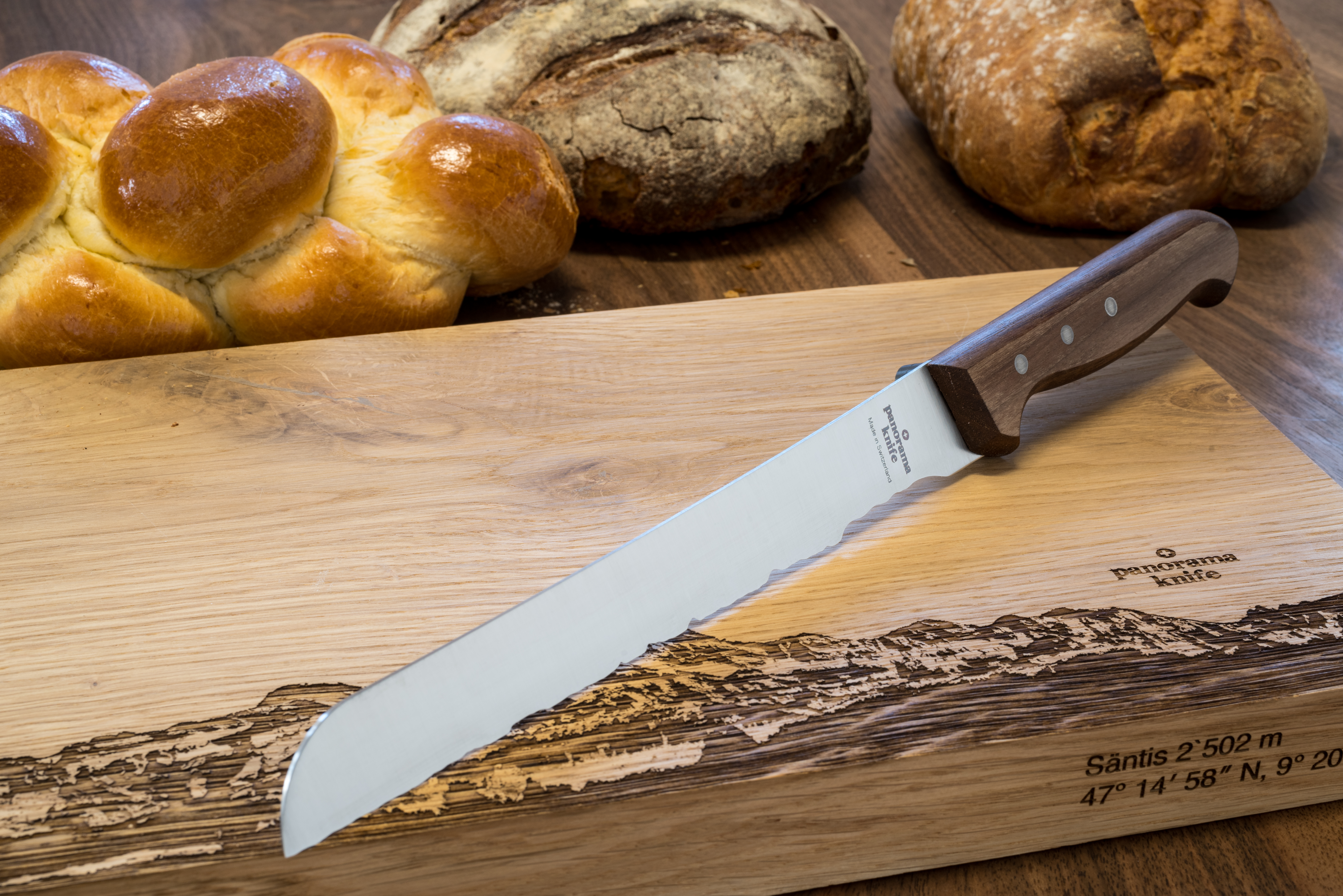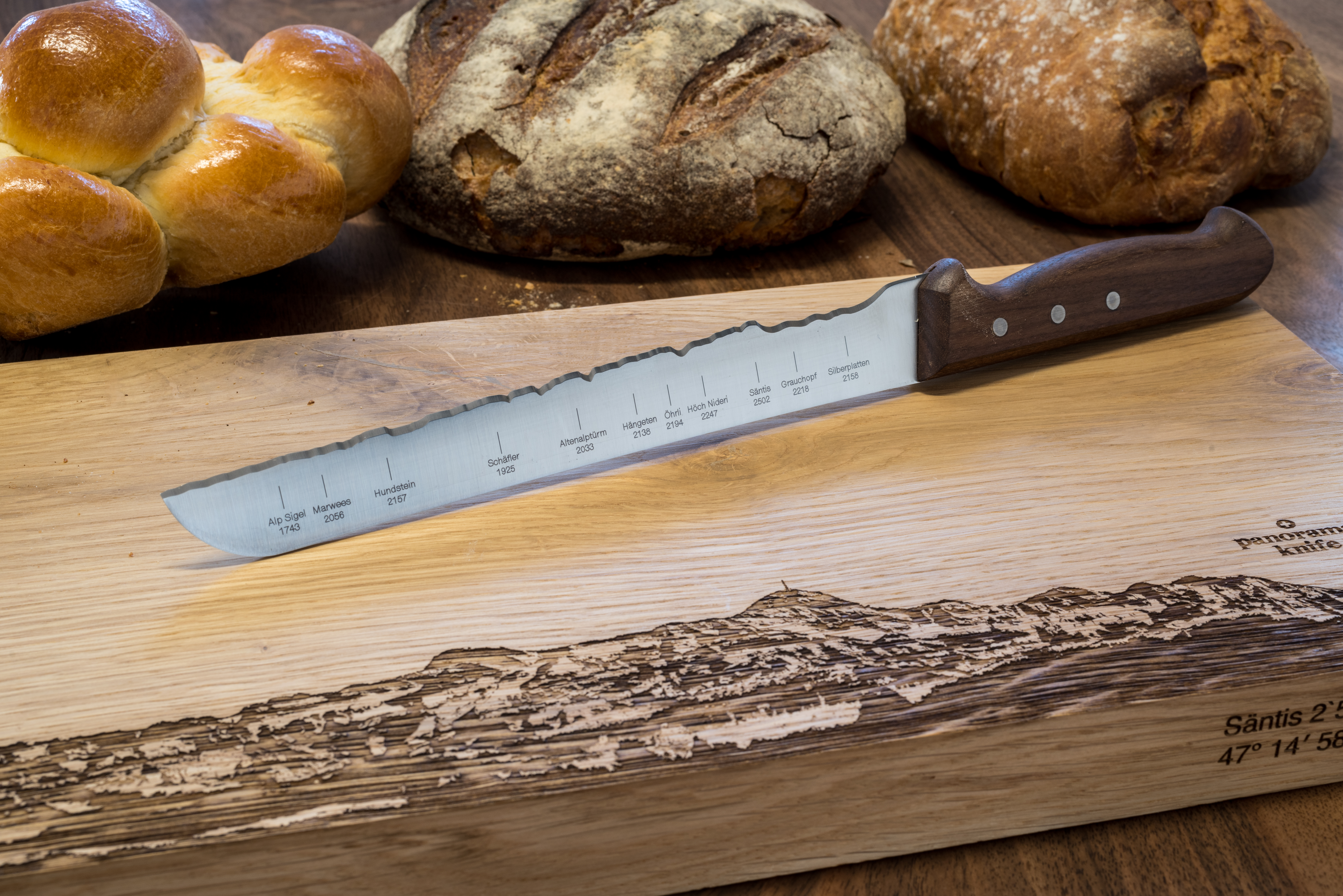 Mit deinem neuen Panoramaknife Brotmesser wird Schneiden zum Erlebnis! Die Klinge ist mit bekannten Schweizer Bergen und Sehenswürdigkeiten verziert – ein echter eidgenössischer Hingucker in jeder Küche. Jedes Messer ist handgefertigt und Made in Switzerland. Von Basel bis ins Tessin, vom Genfersee bis zum Bodensee – nahezu jede Landschaft ist Teil dieser beeindruckenden Kollektion. Freu dich auf eine ca. 21 cm lange Klinge aus hochwertigem Chirurgenstahl und einen eleganten Griff aus Nussbaumholz. Denn Heimat ist schliesslich auch bei dir zu Hause!