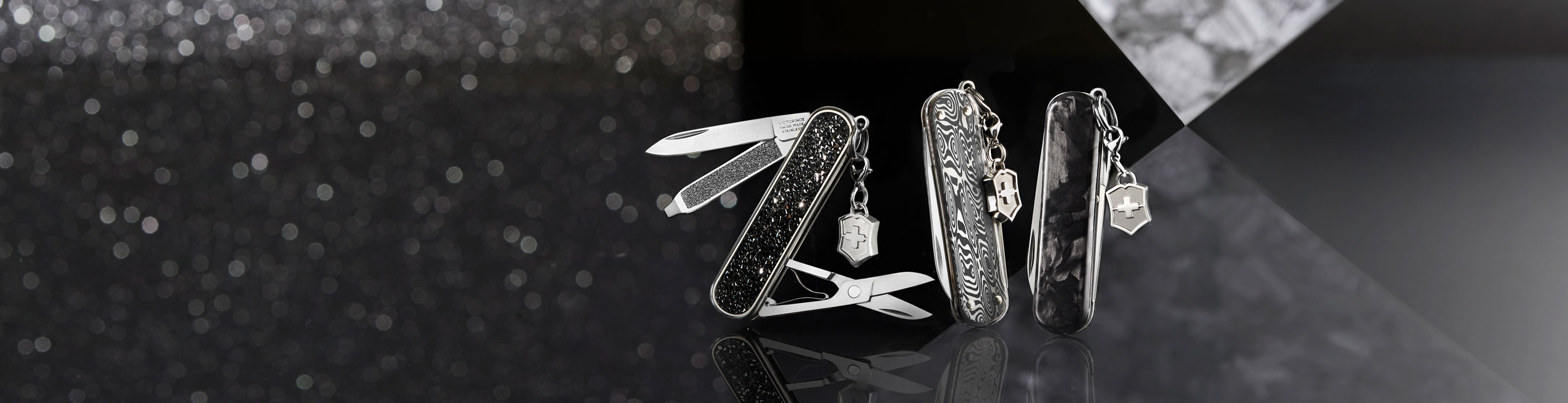 Eine neue Innovation vom Hause Victorinox. Die Kollektion Classic Brillant Collection besteht aus drei einzelnen Classic Messern. Das Classic Messer ist das beliebteste kleine Taschenmesser überhaupt. Mit diesen neuen Modellen ist Victorinox ein Dream-Team gelungen. Es gibt für Jedermann das passende edle Schweizer Taschenmesser. Liebst du es glamourös und funkelnd, dann wird das Classic Brillant Crystal mit Bündner Bergkristall deine Persönlichkeit im Alltag unterstreichen. Bist du eher ein Liebhaber von schlichter Langlebigkeit, wird dir das Damast Sackmesser mit 333 Lagen Damast-Stahl sehr zusagen. Bist du jedoch ein Fan von Hightech-Eleganz, so nimm mal das Classic Brillant Carbon unter die Luppe. Du wirst dein Lieblingmodell finden.