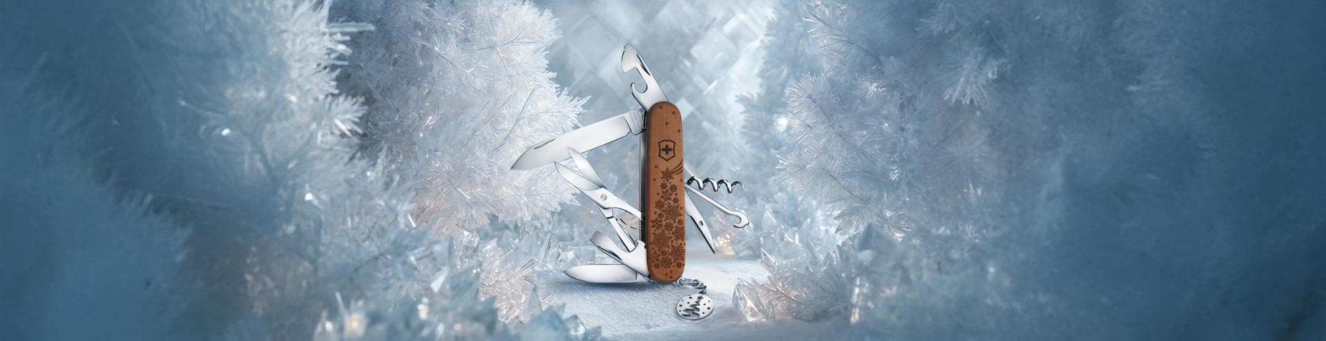 Die neueste Edition 2025 präsentiert sich auf Basis des beliebten Climber Wood und begeistert mit Griffschalen aus edlem Birnbaumholz. Zarte Lasergravuren zeigen winterliche Baumlandschaften, die im Licht ihre feine Struktur entfalten. Ein abnehmbarer Schneeflocken-Anhänger und die weltweite Limitierung auf 10 000 Stück machen dieses Modell zu einem echten Highlight der Serie – natürlich mit allen Funktionen, die man von Victorinox kennt.