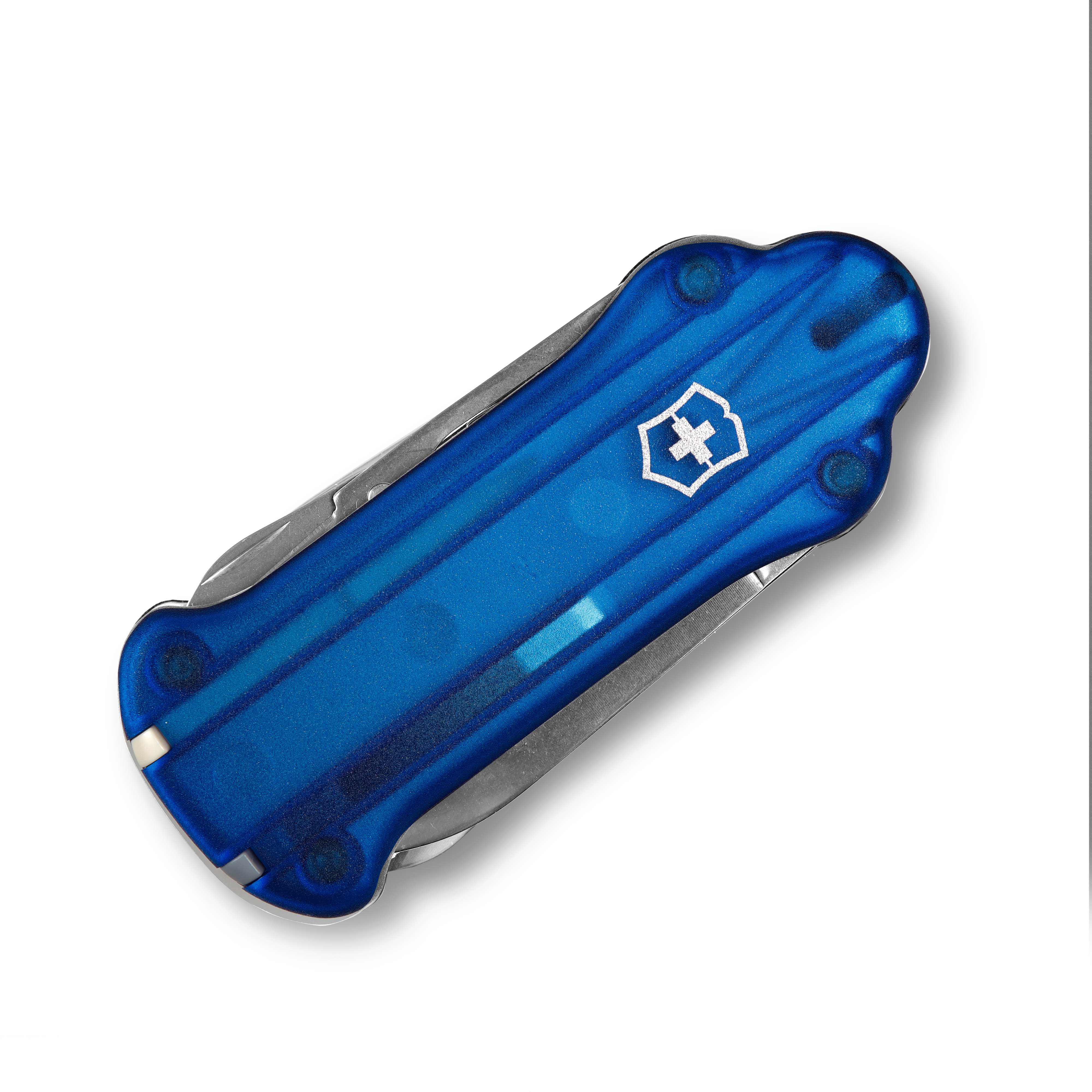 Im Sackmesser integriert sind solch spezielle Sachen wie ein Locher für das Tee (ein Stift, welcher beim Abschlag in den Boden gesteckt wird und auf den dann der Ball aufgelegt werden kann.) Oder aber kann mit einem integrierten Reparatur-Werkzeug das Green (das Grün um das Loch herum) wieder in Bestzustand versetzt werden. Ausserdem hat das Victorinox Golf Tool in blau transparent einen Ballmarker.