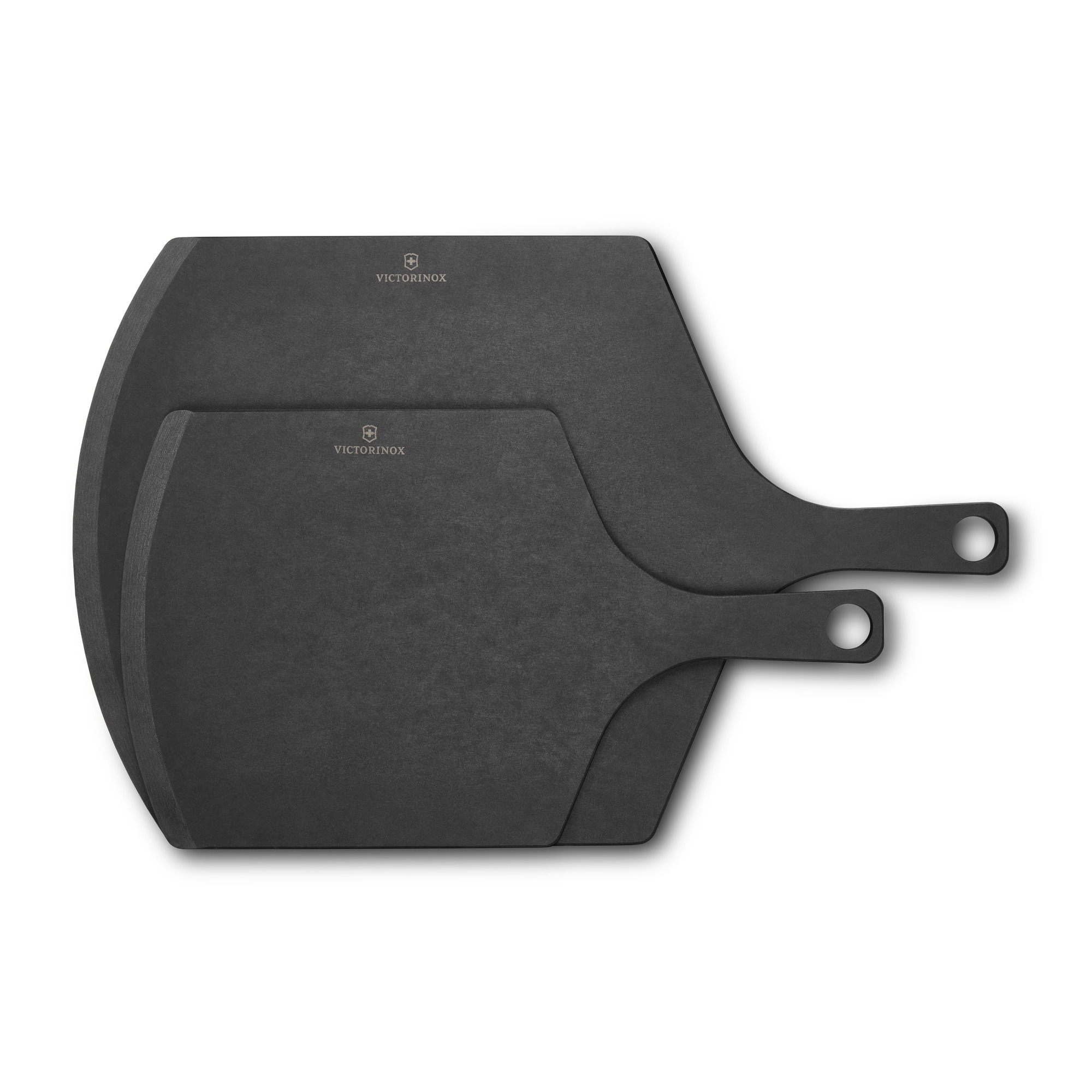 Die elegante Pizzaschaufel mit ihrem praktischen Griff macht das Zubereiten und Servieren von Pizza zum echten Vergnügen. Die abgeschrägte Kante sorgt für ein einfaches und effektives Handling. Das stilvolle Schneidebrett aus hochwertigem Papierverbundstoff ist nicht nur besonders schlank, sondern auch äusserst langlebig. Dank der klingenschonenden Oberfläche und einer Hitzebeständigkeit bis 175 °C gelingt die perfekte Pizza – als wärst du ein Profi! Hol dir diese praktische Unterstützung und verwandle deine Küche mit Victorinox in eine wahre Pizzeria...Bellissimo! Erhältlich ist die Schaufel in einer grossen und kleinen Variante sowie braun oder schwarz gefärbt.