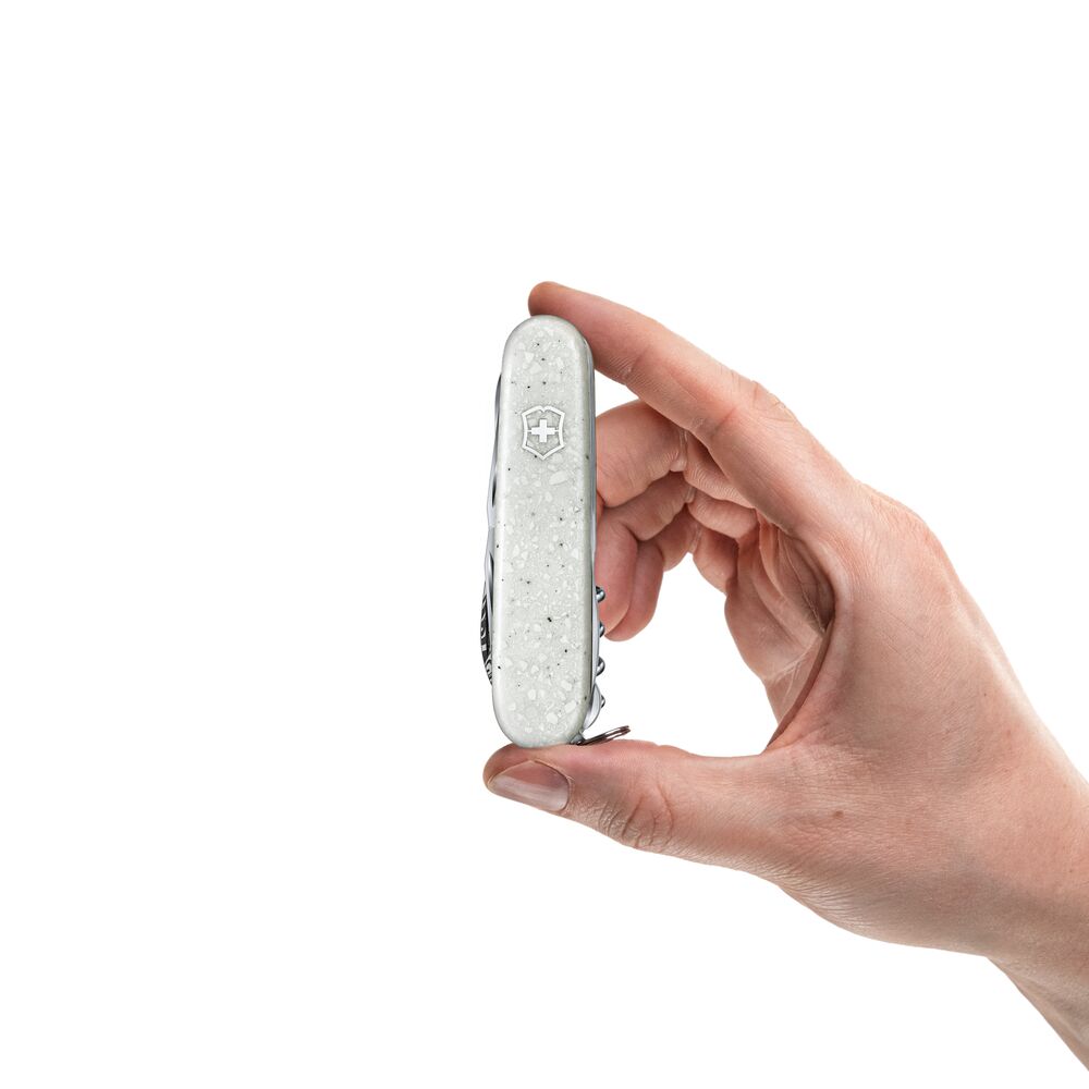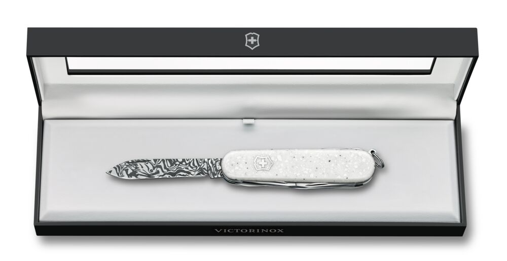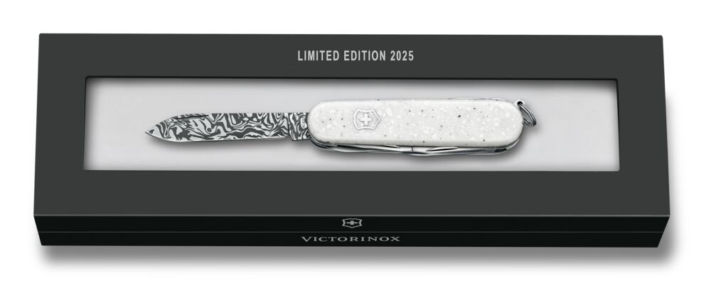 Das Victorinox Special Companion Damast Limited Edition 2025 ist ein außergewöhnliches Sammlerstück für Kennerinnen und Kenner – streng limitiert auf nur 7.000 einzeln nummerierte Exemplare weltweit. Mit seinem hochwertigen Materialmix und der ikonischen Gestaltung richtet sich dieses Modell gezielt an anspruchsvolle Sammler und echte Markenliebhaber. Die Klinge aus Damaststahl, gefertigt aus 264 Lagen im faszinierenden Svavner-Muster, überzeugt mit einem Härtegrad von 60 HRC – kompromisslos in Qualität, Optik und Schärfe. Besonders ins Auge fallen die Griffschalen aus Corian: mattweiss, kratzfest und in ihrer Naturstein-Optik ebenso edel wie einzigartig. Das Material verleiht dem Taschenmesser eine moderne, fast skulpturale Anmutung, die Funktionalität mit Stil verbindet. Das Modell ist nicht nur ein praktisches Werkzeug, sondern ein hochwertiges Sammlerobjekt, das Designästhetik, Exklusivität und technische Raffinesse vereint.