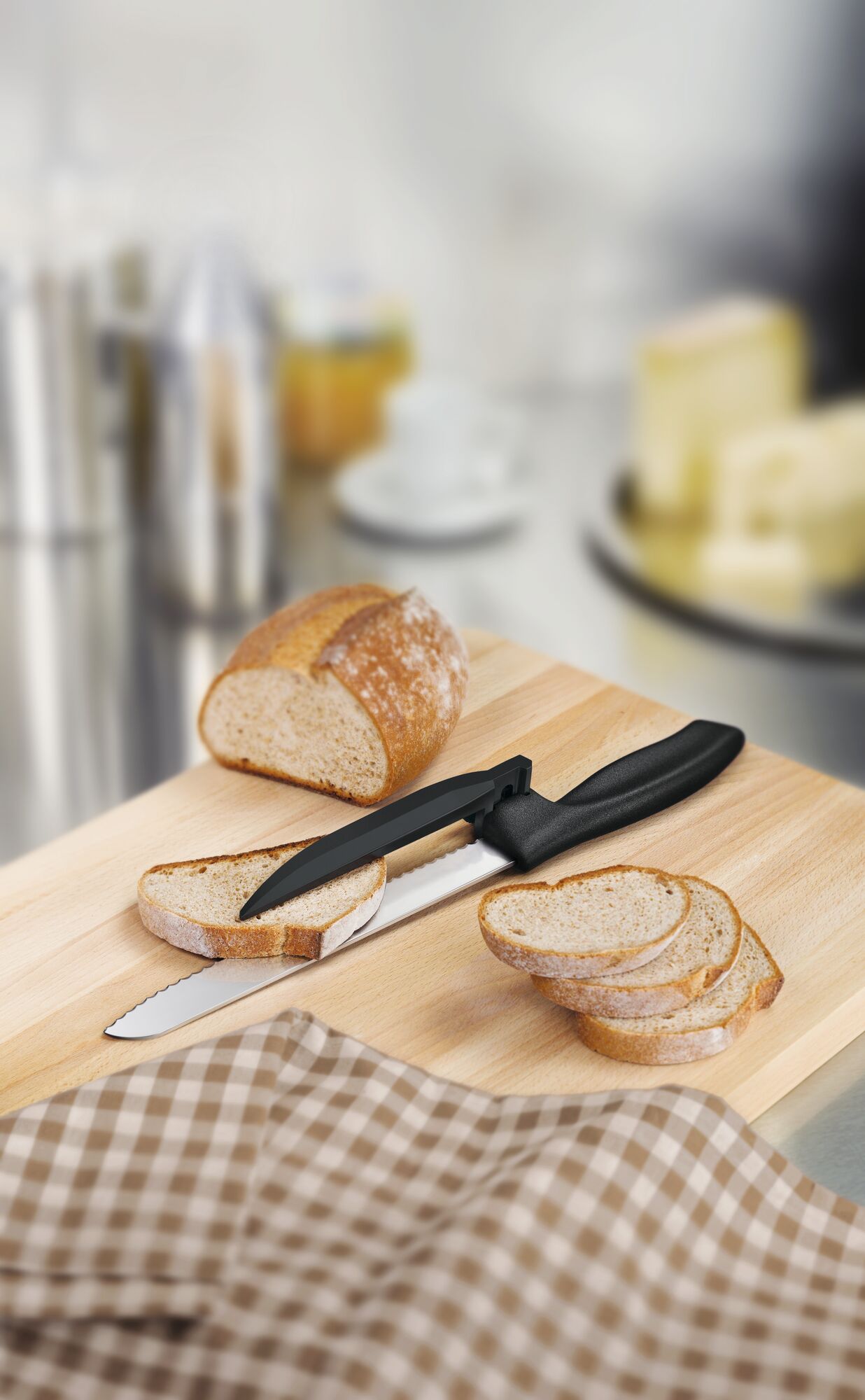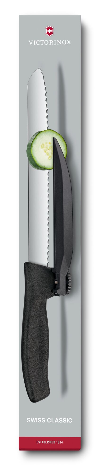 Das Victorinox Swiss Classic Dux-Messer vereint traditionelle Schweizer Handwerkskunst mit moderner Funktionalität – ein echtes Must-have für alle, die Wert auf Qualität und Komfort beim Kochen legen. Mit seiner extra scharfen Edelstahlklinge schneidet dieses Messer mühelos durch Gemüse, Obst, Fleisch und Brot. Die präzise Verarbeitung garantiert saubere Schnitte ohne großen Kraftaufwand – perfekt sowohl für die tägliche Küche als auch für besondere Anlässe. Der ergonomisch geformte Swiss Classic Griff liegt angenehm und sicher in der Hand. Dank rutschfestem Material eignet sich das Messer auch für längeres Arbeiten ohne Ermüdung. Ob Hobbykoch oder Profi – dieses Messer macht jede Zubereitung schneller, sicherer und effizienter. Ob frisches Brot, feine Salami oder knackige Gurken – dank der verstellbaren Führung gelingen dir präzise Schnitte mit Leichtigkeit – jedes Mal aufs Neue. Wie alle Victorinox-Produkte überzeugt auch das Swiss Classic Dux-Messer durch seine Langlebigkeit, Robustheit und zeitlose Eleganz. Es ist pflegeleicht, spülmaschinengeeignet und bleibt auch nach häufigem Gebrauch zuverlässig scharf.