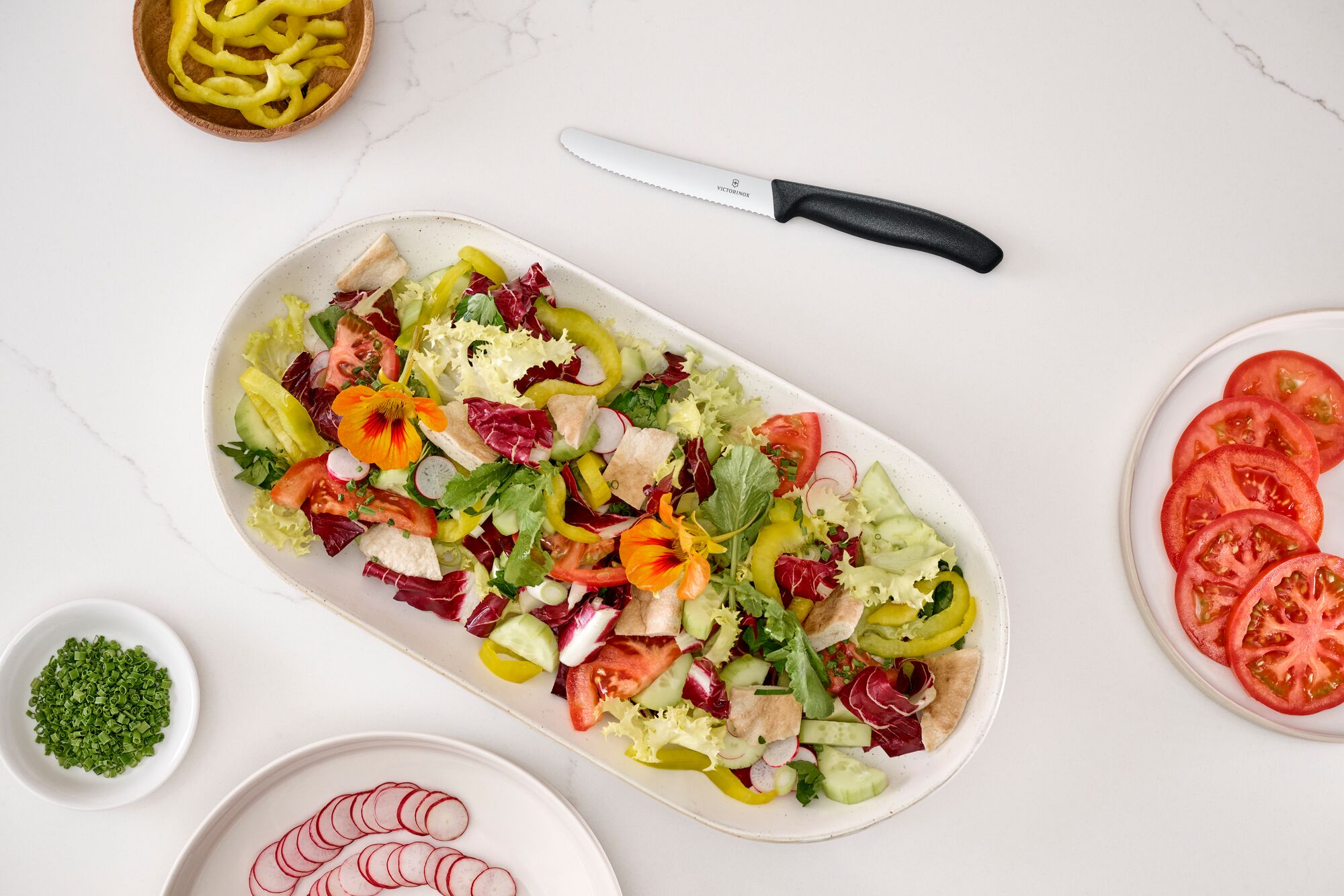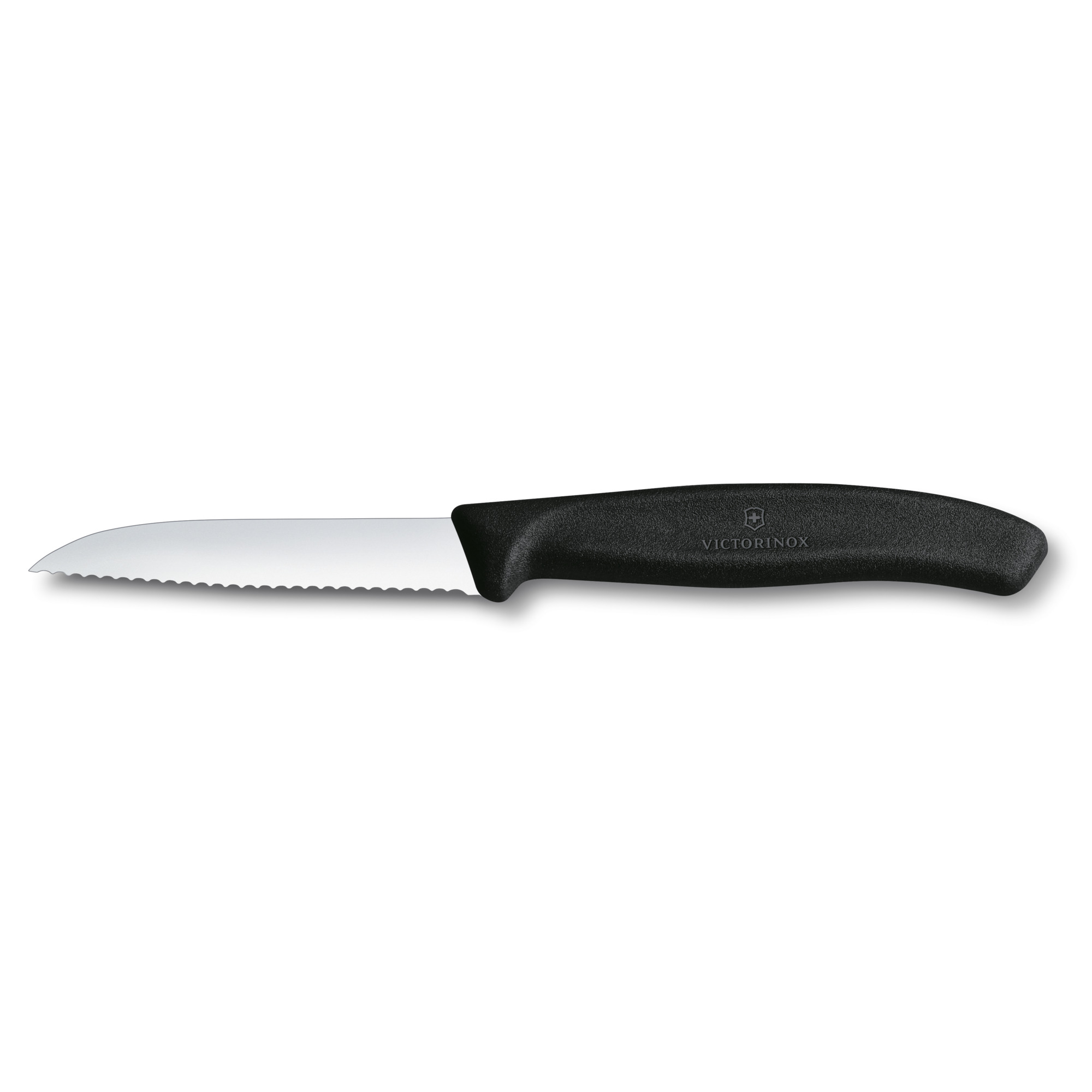 Mit unserem dreiteiligen Victorinox Swiss Classic Gemüsemesser-Set bist du für alle Herausforderungen in der Küche bestens gerüstet. Ob Schneiden, Schälen oder Entkernen – die drei verschiedenen Klingentypen bieten dir maximale Vielseitigkeit und Präzision. Das Set umfasst zwei Messer mit Wellenschliff, die sich ideal zum Schneiden von weichen Früchten mit empfindlicher Schale eignen, wie Tomaten oder Kiwis. Das dritte Messer mit gerader Klinge ist perfekt für präzise Schnitte bei kleineren Zitrusfrüchten oder knackigem Gemüse. Dank der ergonomischen Griffe liegt jedes Messer angenehm und sicher in der Hand, sodass längeres Arbeiten mühelos vonstattengeht. Hergestellt in der Schweiz, vereinen diese Messer höchste Qualität, langlebige Schärfe und funktionales Design. Ob als Geschenk für Hobbyköche oder als praktischer Begleiter im eigenen Haushalt – das Victorinox Swiss Classic Gemüsemesser-Set ist eine Bereicherung für jede Küche. Geliefert bekommst du die drei Messer in einer schönen Verpackung – perfekt zum Verschenken. Bring Präzision und Schweizer Qualität in deine Küche – mit diesem vielfältigen Messer-Set.