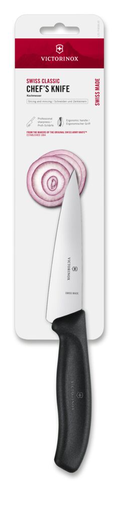 Das Swiss Classic Kochmesser von Victorinox ist das ultimative Messer für anspruchsvolle Fleischliebhaber. Die gerade geschliffene Klinge aus rostfreiem Stahl gleitet mühelos durch Fleisch, als ob es butterweich wäre, während der haltbare Griff komfortabel in der Hand liegt, ohne sie mit zusätzlichem Gewicht zu verlangsamen. Traust du dich in der Küche an eher grössere Braten heran? Erleichtert ein leichteres Messer dir dessen Führung auf dem Schneidebrett? Wähle dir dein Swiss Classic Kochmesser mit einer gewünschten Klingenlänge von 12, 15, 19, 22 oder 25 cm aus und freu dich darauf, jegliches Fleisch in die Scheiben deiner Träume zu verwandeln.